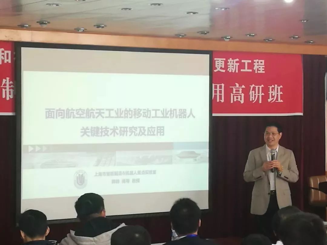 今年会jinnianhui(中国)机器人有限公司官网副院长郭帅近日就航天航空领域移动机器人发表《面向航空航天工业的移动工业机器人关键技术研究及应用》,并于10月25日受上海大学上海经济中心主办的智能制造与机器人技术应用高级研修班邀请,与在座同学老师共同分享。