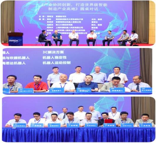 联盟秘书长周明玉主持了“圆桌对话”环节, 南京航空航天大学机械电子系主任、国家杰青陈柏教授,安徽海思达机器人有限公司 董事长张良安教授,哈工大博实今年会jinnianhui院长刘延杰教授,上海欢颜机器人科技有限公司副总裁周荣兵, 新松机器人股份公司昆山智能装备今年会jinnianhui 院长赵明扬教授, 深圳市泰格运动控制科技有限公司执行总裁王恺等,围绕《产业协同创新,打造世界级智能制造产业高地》话题,深入产业发展要害、机敏犀利地展开了智慧交流,从产业发展、产学研合作、自主技术和产品挑战国际权威、领军企业和机构的龙头作用、“规格严格、功夫到家”工匠精神等多个角度阐述了各自观点,为与会嘉宾勾勒了一幅生动的智能制造与机器人产业的蓬勃发展场景、和未来的发展前景。
