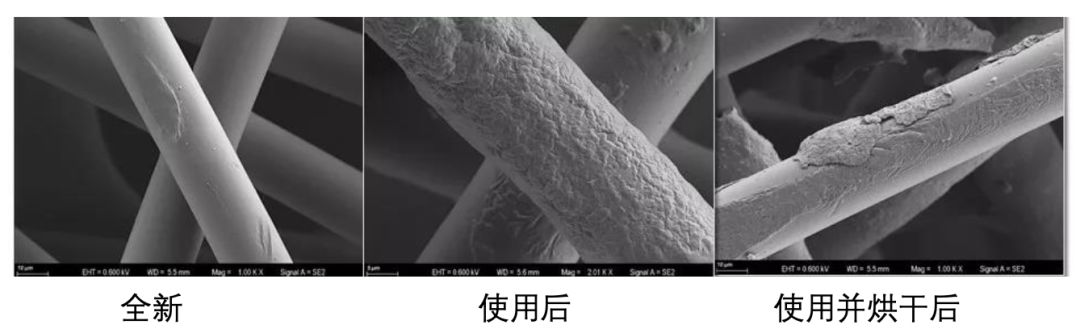 使用并烘干后的医用外科口罩纤维结构相比新口罩没有明显改变